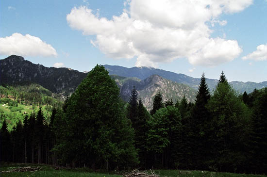 Gute 30 Minuten werden wir vom Klopeiner See zur Trägerner Klamm brauchen. Verfehlen können wir unser Ziel nicht, dient uns doch aus jeder Kurve und aus jeder Senke der 2142 Meter hohe Hochobir als Wegweiser. In der Nacht hat es dort oben scheinbar ein wenig geschneit, der Gipfel strahlt in der Sonne ganz weiß herunter. Wir sind, zugegebenermaßen, keine großen Wanderer vor dem Herrn und verfügen daher auch über keine spezielle Wanderkleidung. Als wir unseren Führer, Robert Matweber, das erste Mal sehen, denken wir uns insgeheim „na, der wird sich aber jetzt was von uns denken“, Halbschuhtouristen, wie wir jetzt hier auftauchen. Doch der Oberförster in Ruhestand, hochprofessionell gekleidet als solcher auch auf den ersten Blick sofort zu erkennen, scheint derartiges gewöhnt zu sein, wehrt unsere ziemlich dünnen Erklärungsversuche bezüglich Schuhwerk usw. freundlich ab und meint, es wäre schon recht, er hätte ja ohnedies keine größere Tour geplant.