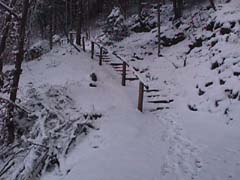 DER AUFSTIEG FÜHRT DURCH RAUHREIFVERZIERTE WALDLANDSCHAFT MIT EIGENTÜMLICHEN, JA FAST MYSTISCHEM REIZ. |
